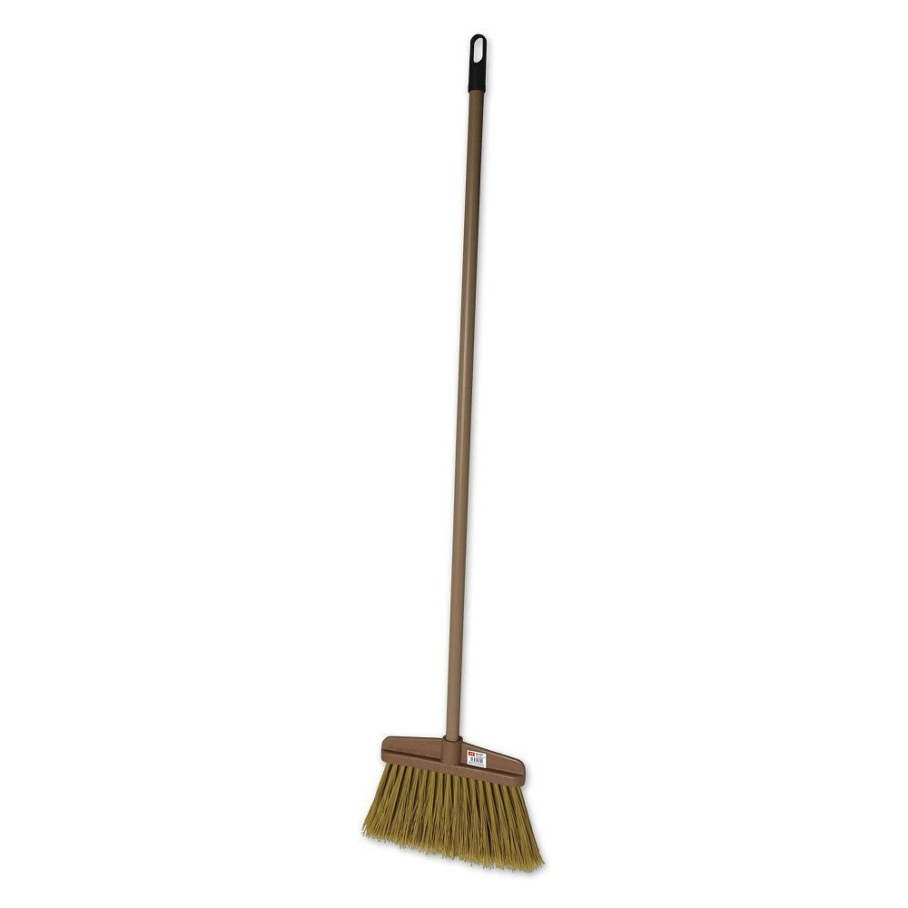 Садовая метла из синтетического ворса и пластикового каркаса идеально подходит для повседневной уборки сада и подметания зданий.