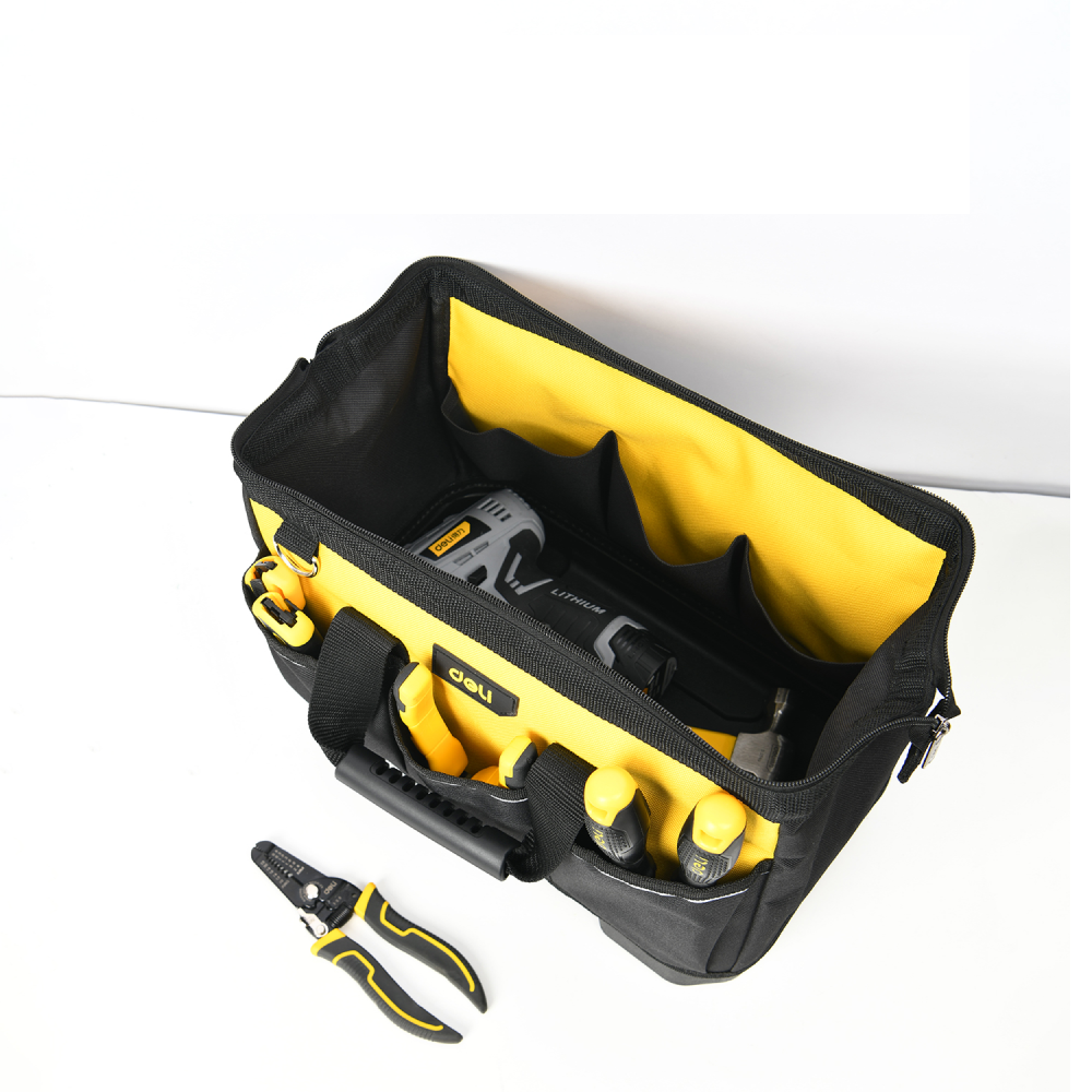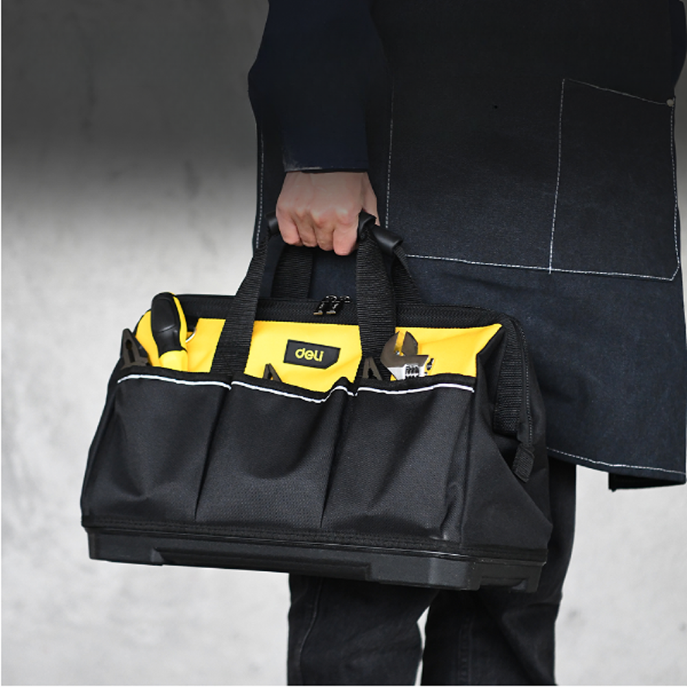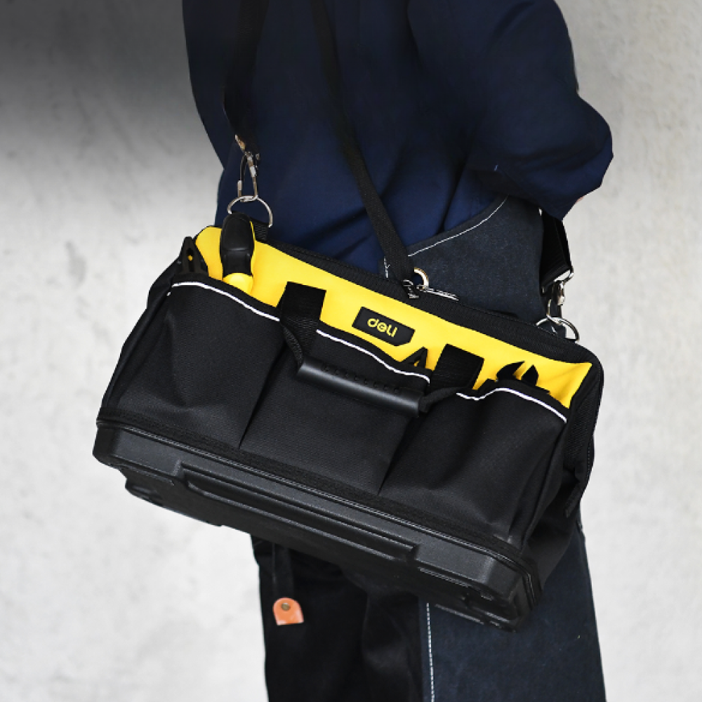 Сумка для инструментов Deli YS DL586119 - прочная и вместительная модель, предназначенная для удобного хранения и переноски ручного инструмента и аксессуаров.