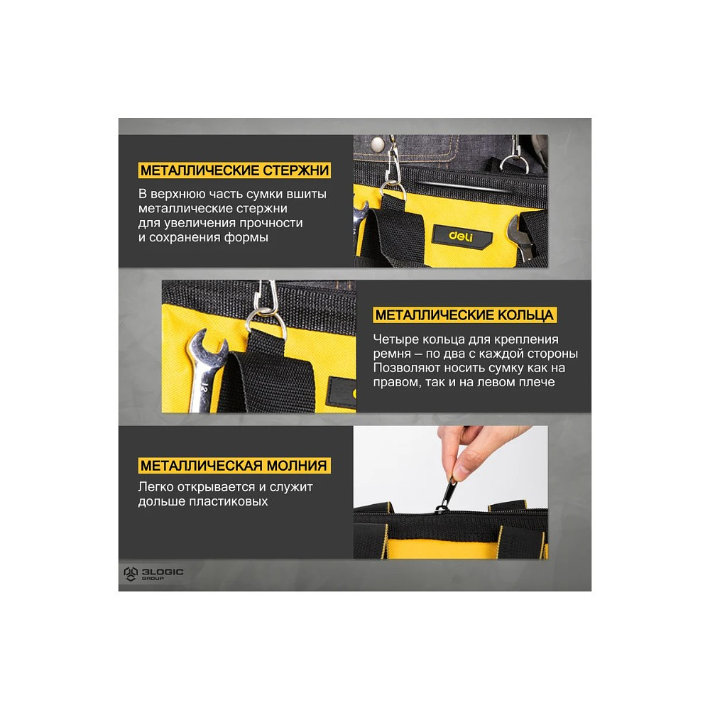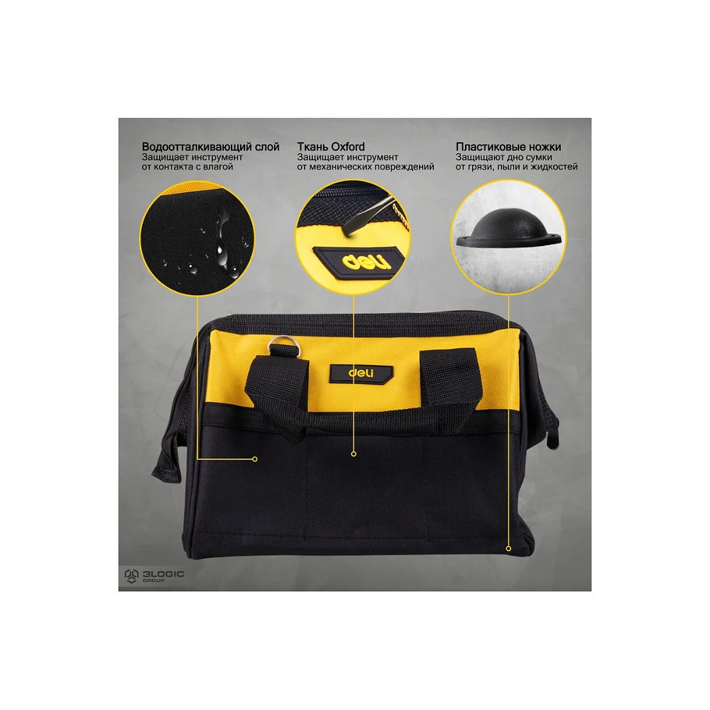 Сумка для инструментов Deli YS EDL-P1, 300х230х250 мм, ткань Oxford, черный, желтый Deli 9197063 купить, цена