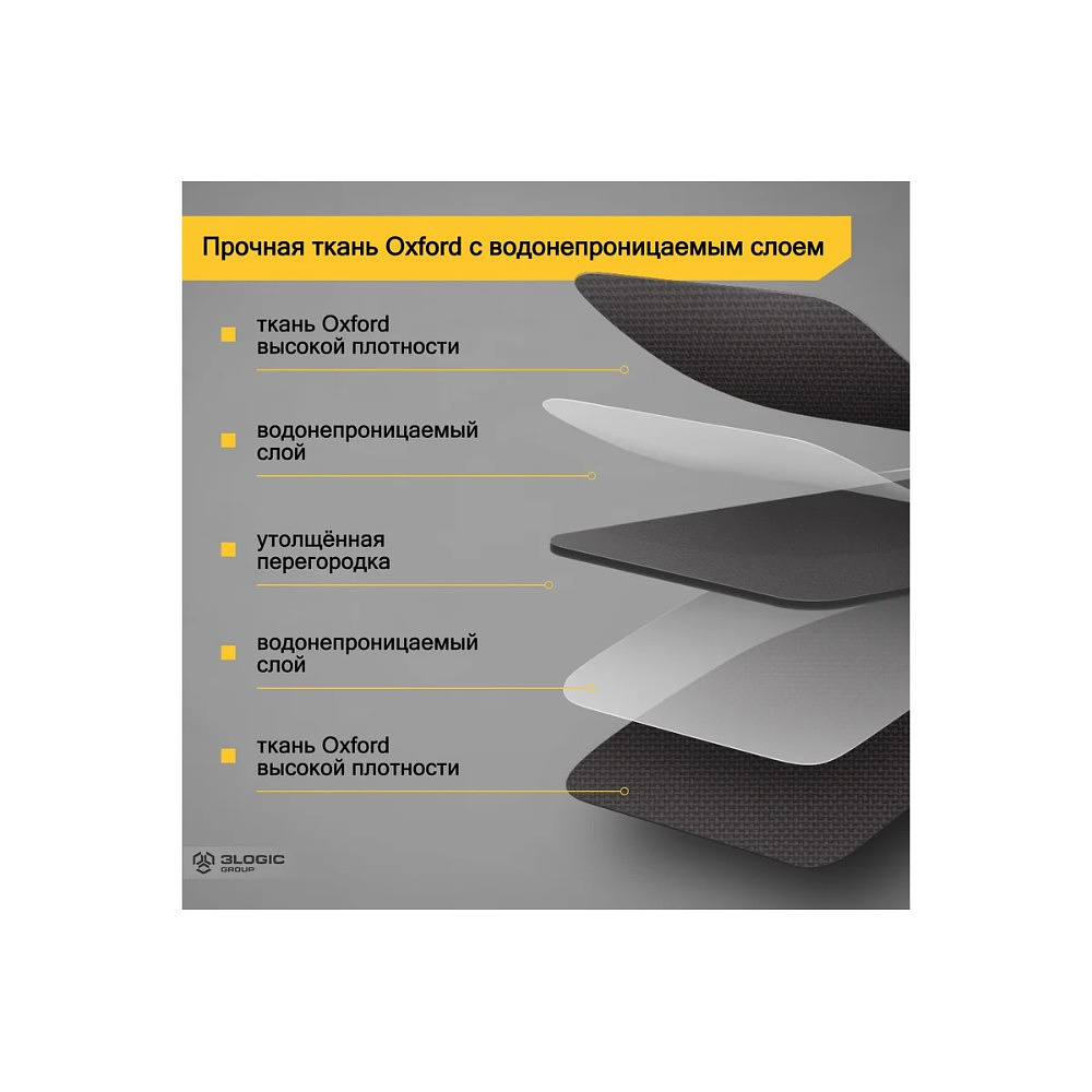• Сумка выполнена из качественной и прочной ткани Oxford плотностью 600D, благодаря чему не боится влаги и пыли, а так же защищена от физических воздействий.