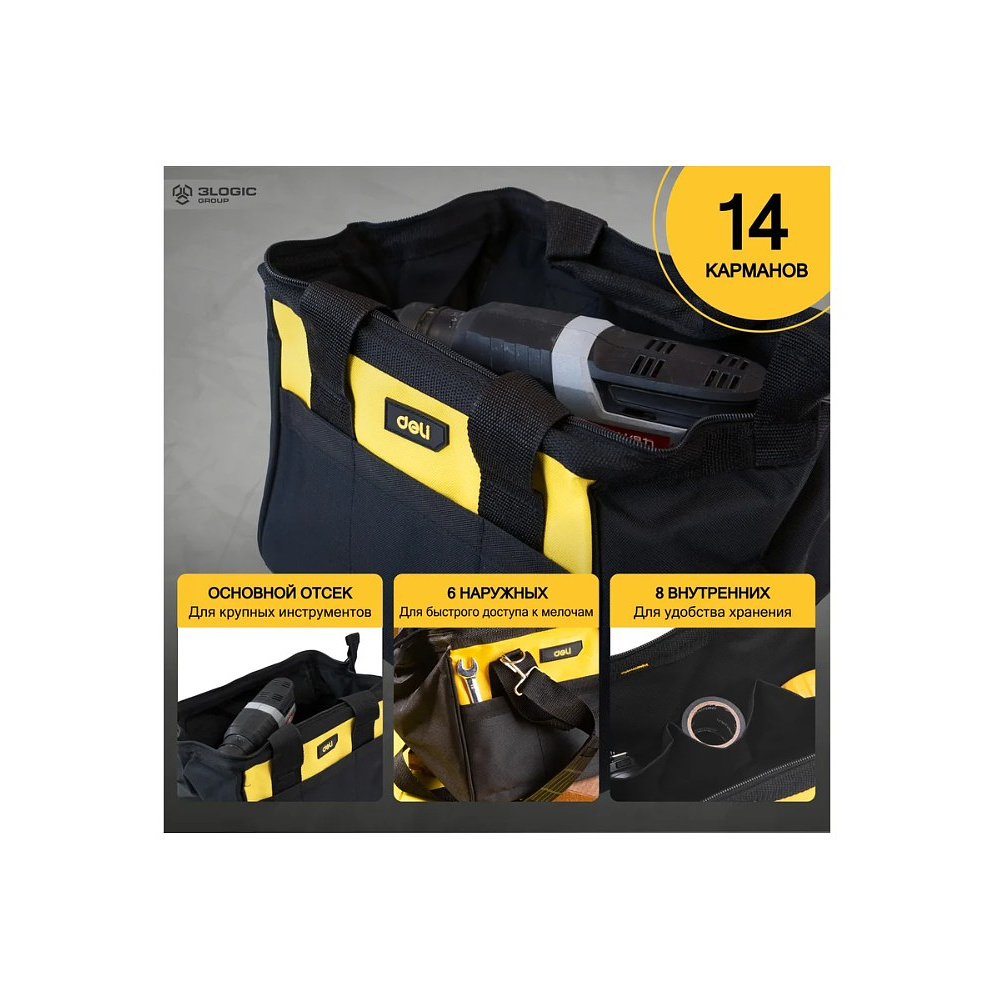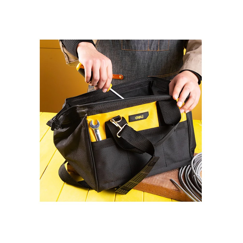 Сумка для инструментов Deli YS EDL-P1, 300х230х250 мм, ткань Oxford, черный, желтый