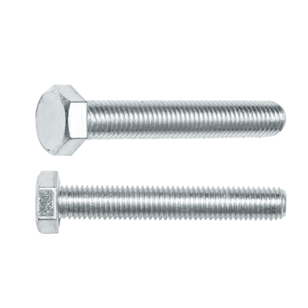 - Болт представляет собой цилиндрический стержень с шестигранной головкой, резьба метрическая и полная. Изготовлен из конструкционной стали и имеет оцинкованную поверхность.