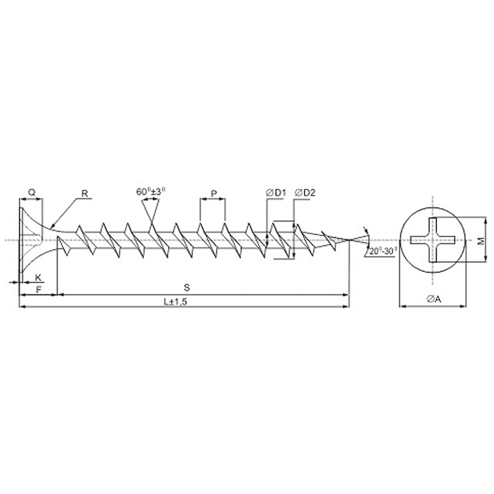 • Потайная головка, крестообразный шлиц Philips № 2, острый наконечник с крупным шагом, оксидированные.