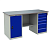 • Верстак окрашен порошковой краской, цвет покрытия корпуса серый шагрень (RAL 7038), лицевая панель дверцы тумбы – синий шагрень (RAL 5002)