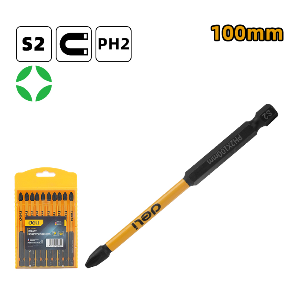 Бита ударная Deli YS EDL251100, 10 шт., PH2 x 100 мм