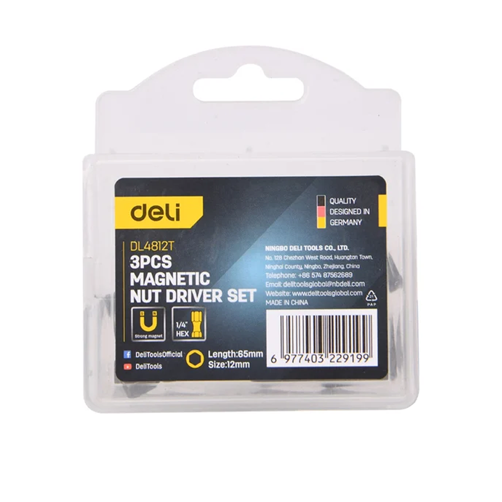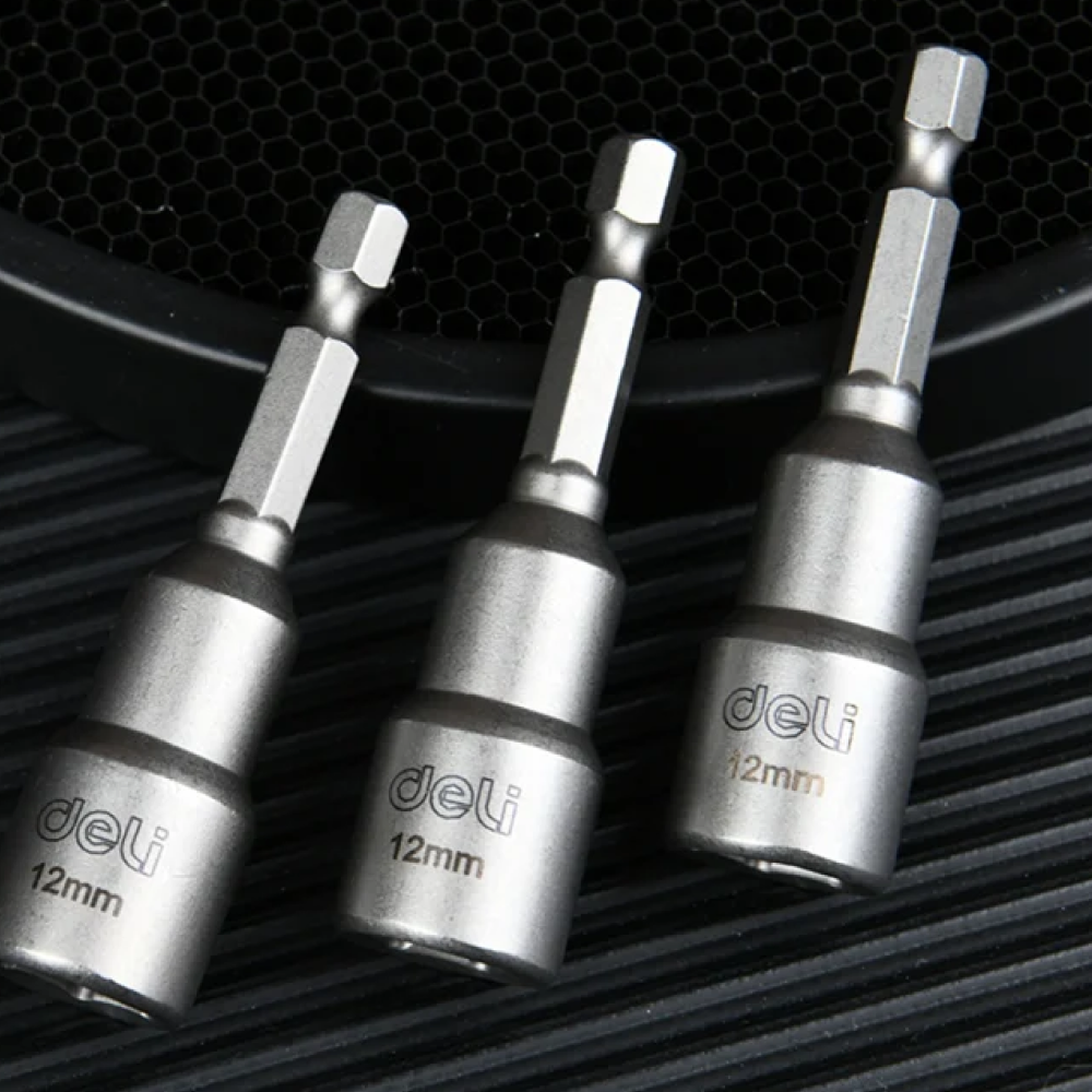 Набор Deli DL4812T включает три магнитные биты с увеличенной торцевой головкой 12 мм, разработанные для работы с массивными болтами и гайками.