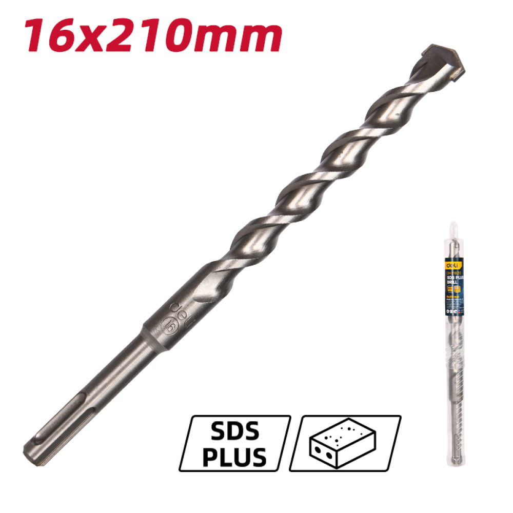 Бур по бетону SDS Plus 16 х 210 мм Deli DH-Y16210 - профессиональный инструмент повышенной прочности для сверления бетона и железобетона.