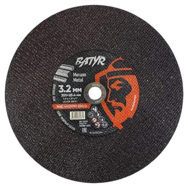 Диск отрезной по металлу BATYR 355 x 3.2 x 25.4 мм BCD35532M - предназначен для резки металлов, включая сталь, нержавеющую сталь и другие металлические сплавы.