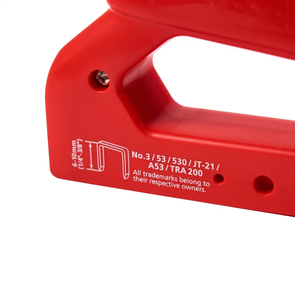 Механический степлер M53110/T имеет неразборную конструкцию из легкого ABS-пластика и эргономичной металлической ручки, что обеспечивает удобство и качество работы.