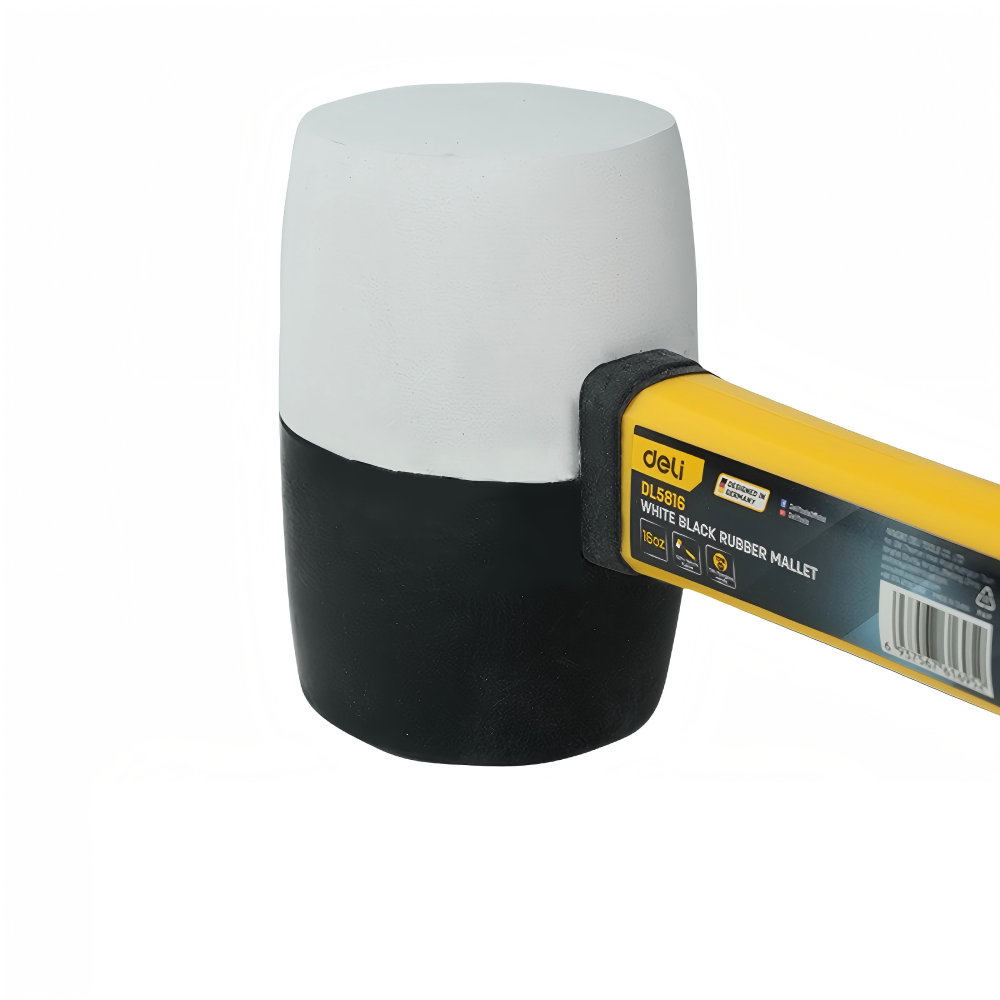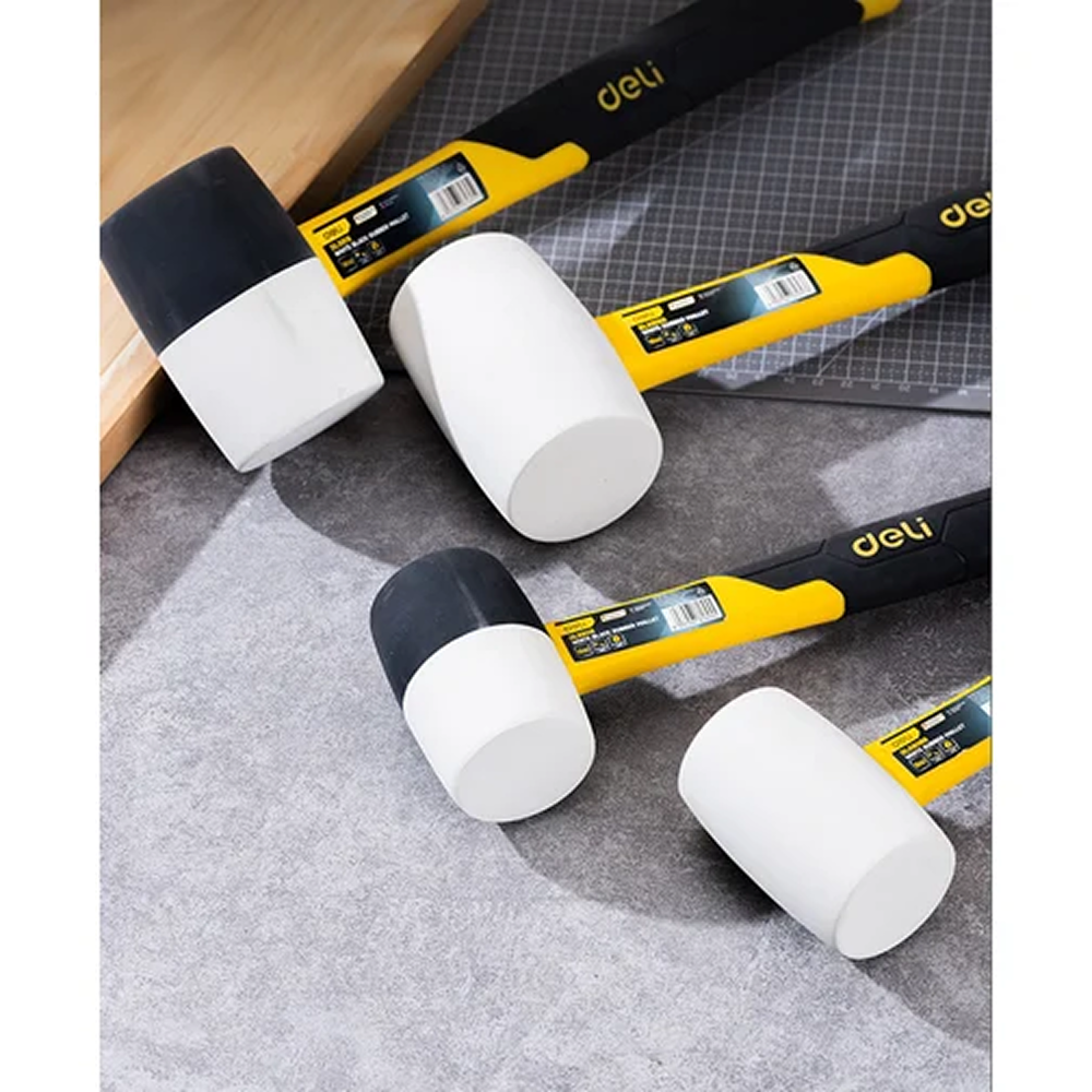Эта резиновая киянка Deli YS EDL5816 весом 450 грамм на фибергласовой рукоятке — воплощение уверенной силы и бережного подхода. Созданная для работ, где мощный удар необходим, но недопустимо повреждение поверхности, она станет незаменимым помощником при сборке мебели, укладке плитки, работе с долотом или правке металла.