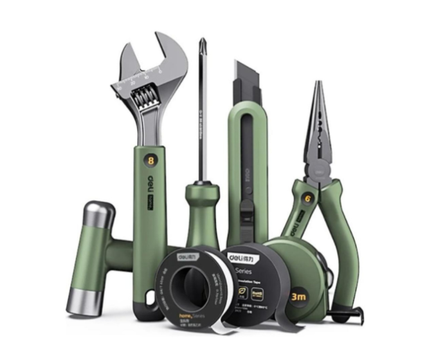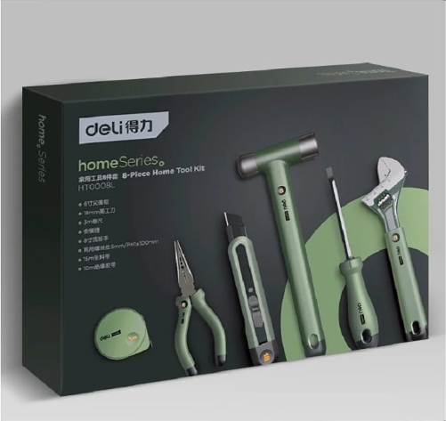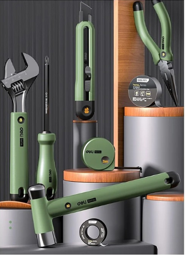 - Набор ручного инструмента Deli HS EHT0008L 8 предметов, Soft Touch, зеленый