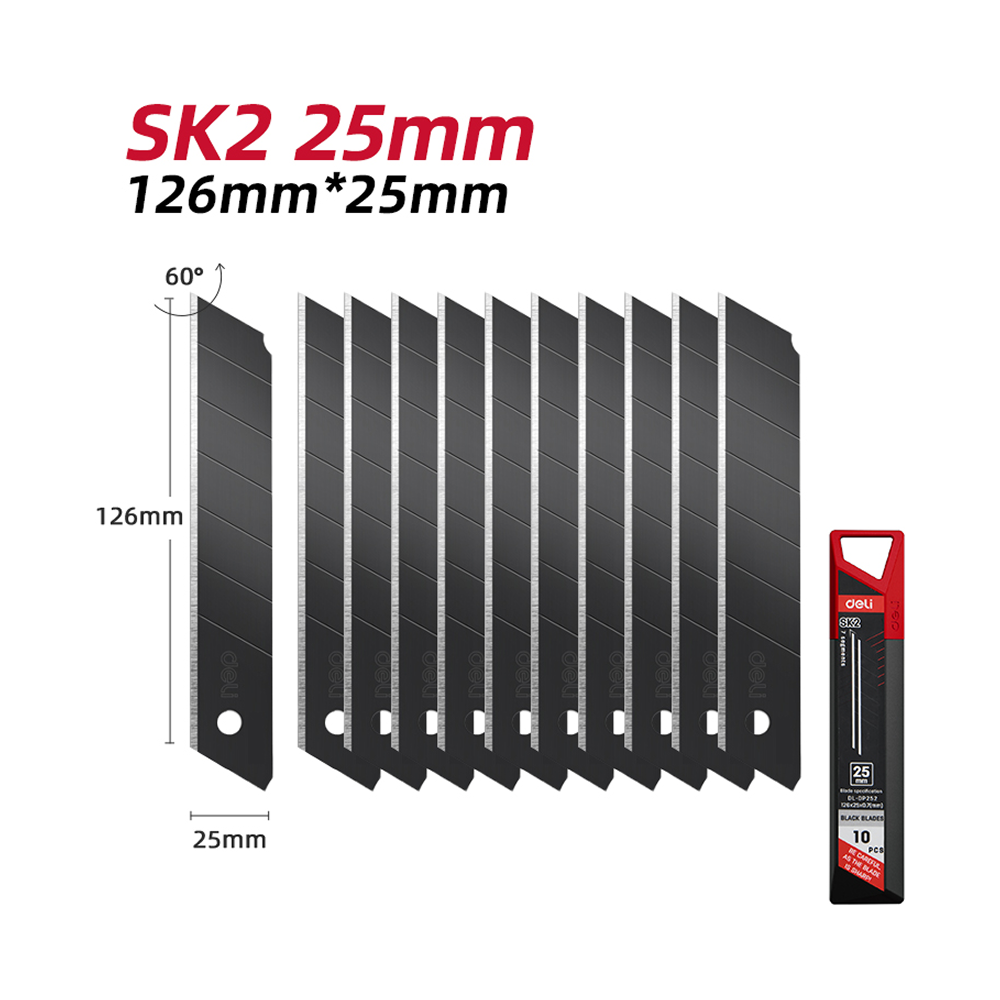 Лезвие для строительного ножа "Deli SK2" 25 мм, 10 шт.