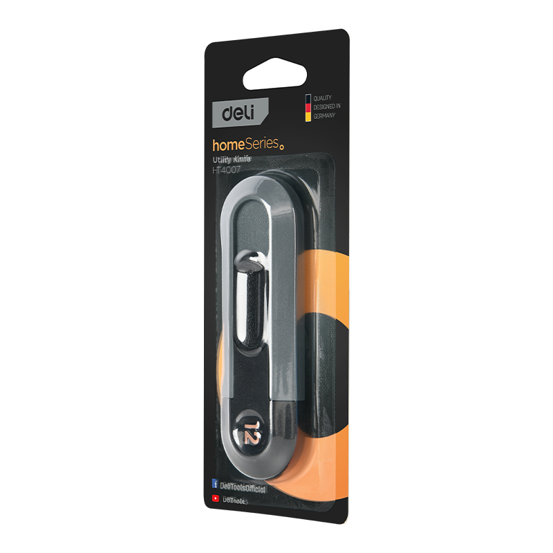 Строительный нож Deli EHT4007 применяется для реза бумаги, картона, линолеума и других материалов.