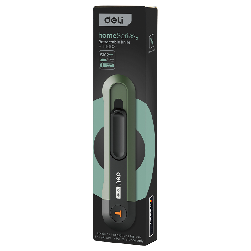 Строительный нож Deli EHT4008L применяется для реза бумаги, картона, линолеума и других материалов. Отличительной особенностью данной модели является её безопасность – нож готов к работе только во время удержания ползунка, но стоит отпустить ползунок и лезвие моментально «спрячется» обратно в корпус. Т-образное лезвие изготовлено из высококачественной стали SK2, что обеспечивает высокую остроту заточки и долговечность. Эргономичная рукоятка из ABS-пластика с покрытием SoftTouch приятная на ощупь, не скользит в руках, гарантируя продолжительную комфортную работу. Нож упакован в стильную картонную коробку и будет отличным подарком для любителей качественного, современного инструмента.