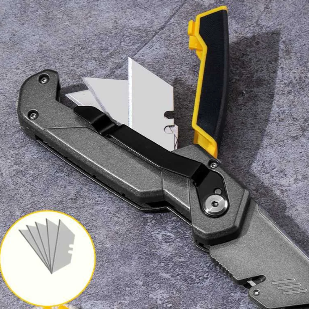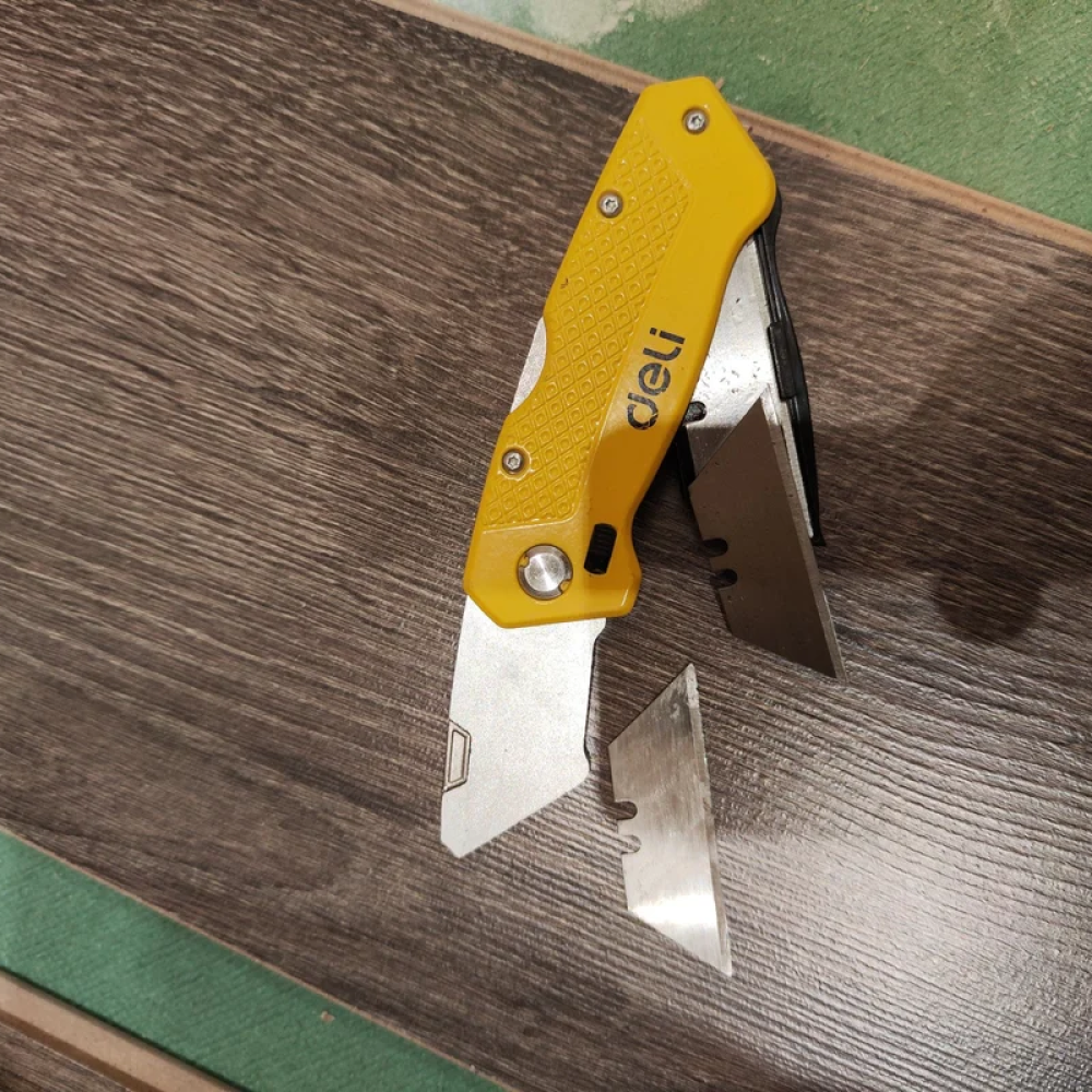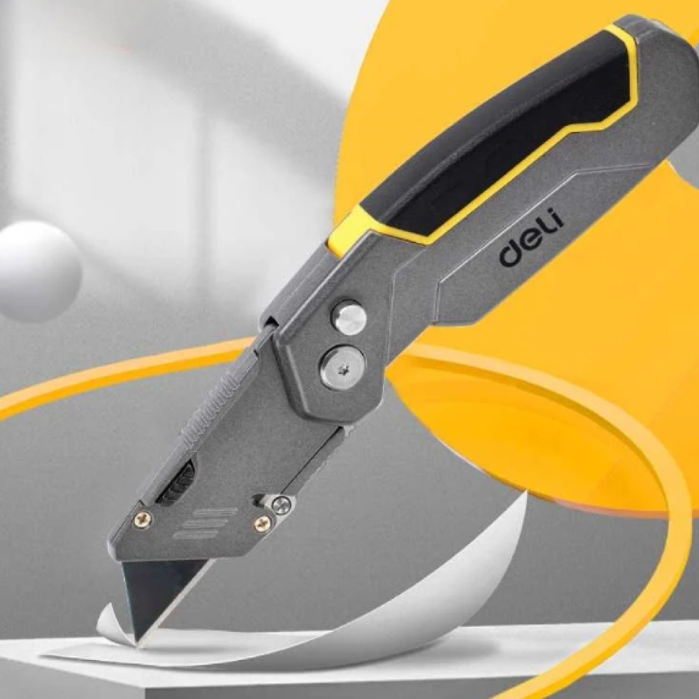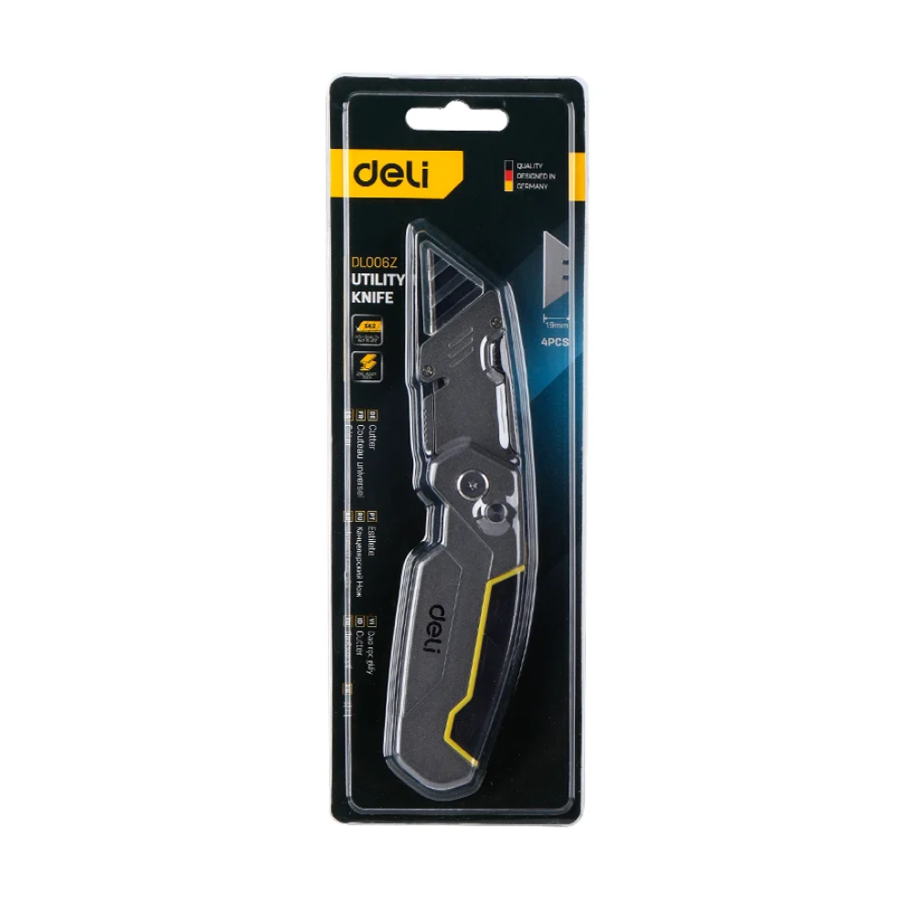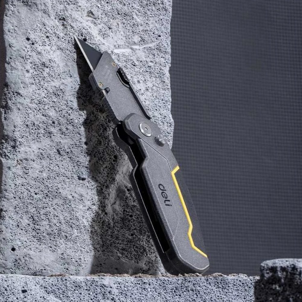 Строительный складной нож с Т-образным лезвием Deli DL006Z применяется для реза бумаги, картона, линолеума и других материалов.