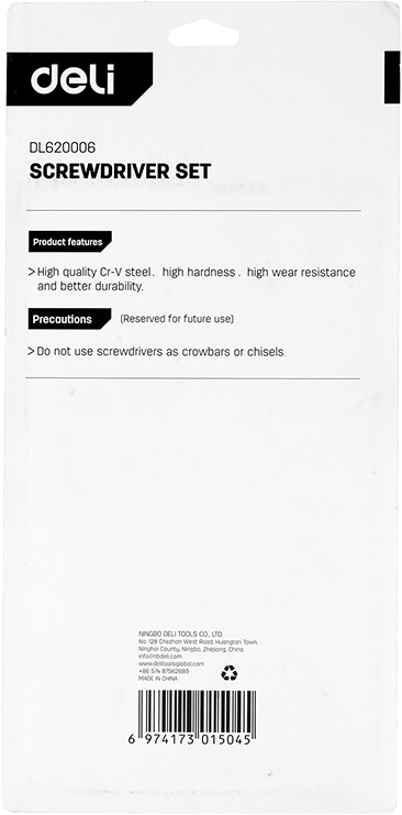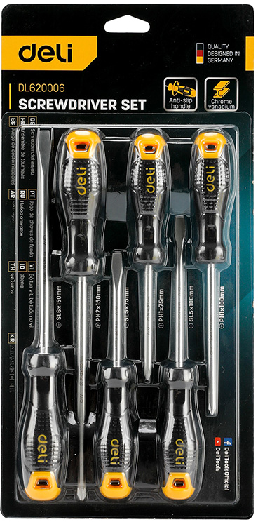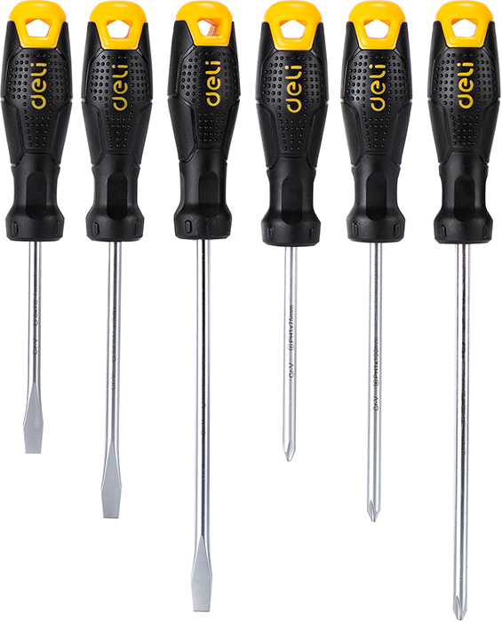 Набор отверток Deli YS EDL620006 (SL5x75, SL5x100, SL6x150, PH1x75, PH1x100, PH2x150), 6 шт.