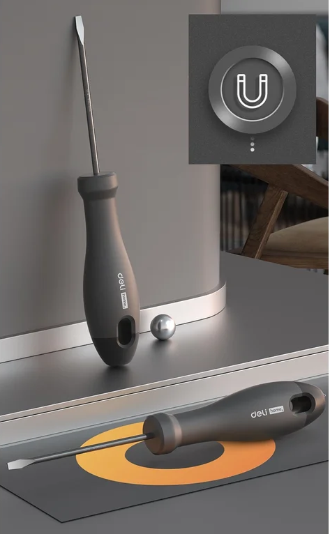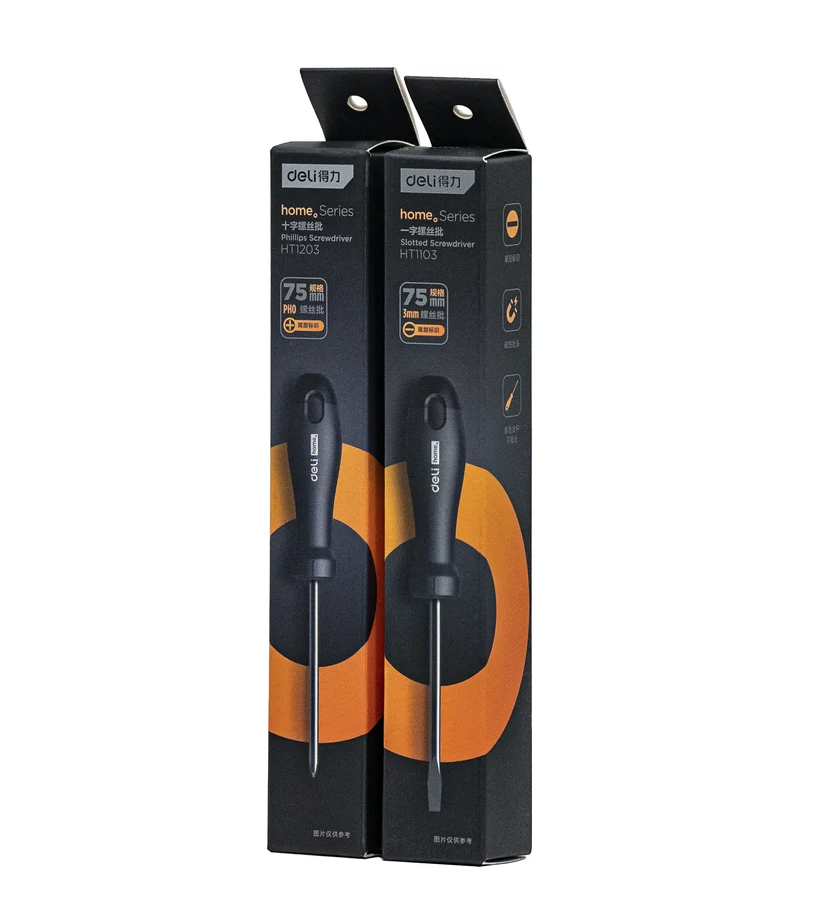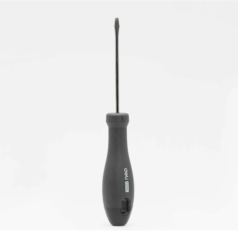 Шлицевая отвёртка Deli EHT1103 SL3x75мм, Cr-V, Soft Touch рукоять, эксклюзивный дизайн, подарочная упаковка используется для работ с резьбовыми соединениями в процессе ремонта или монтажа.