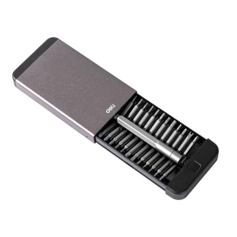 Этот набор прецизионных бит Deli YS EDL3525 — ваш компактный арсенал для работы с самой капризной и тонкой техникой. 25 предметов объединены в единую систему, готовую в любой момент прийти на помощь: от ремонта смарт-часов и очков до регулировки чувствительной электроники и хобби-моделирования.