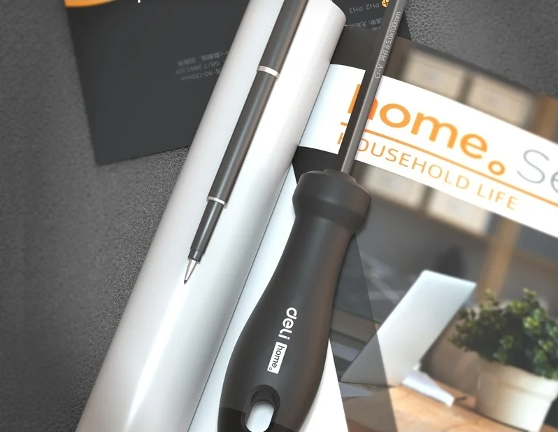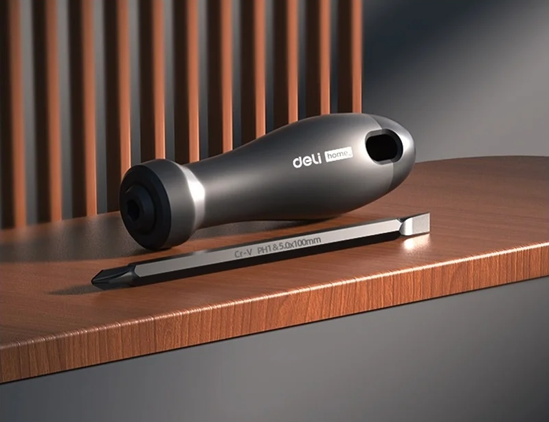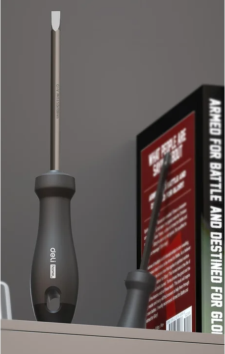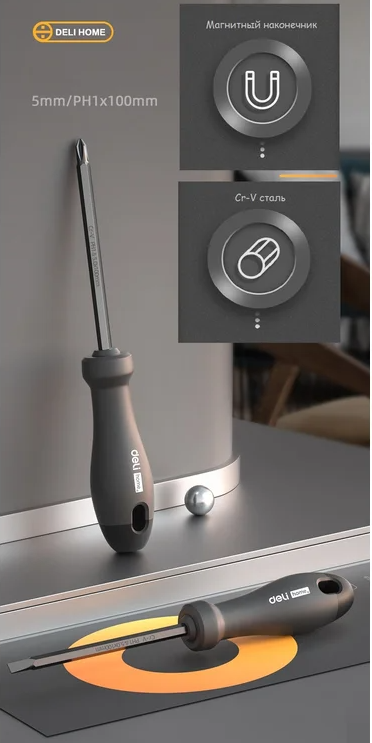 Двухсторонняя отвертка Deli HT1055 SL6/PH2, Cr-V, Soft Touch рукоятка, подарочная упаковка, эксклюзивный дизайн используется для работ с резьбовыми соединениями в процессе ремонта или монтажа.