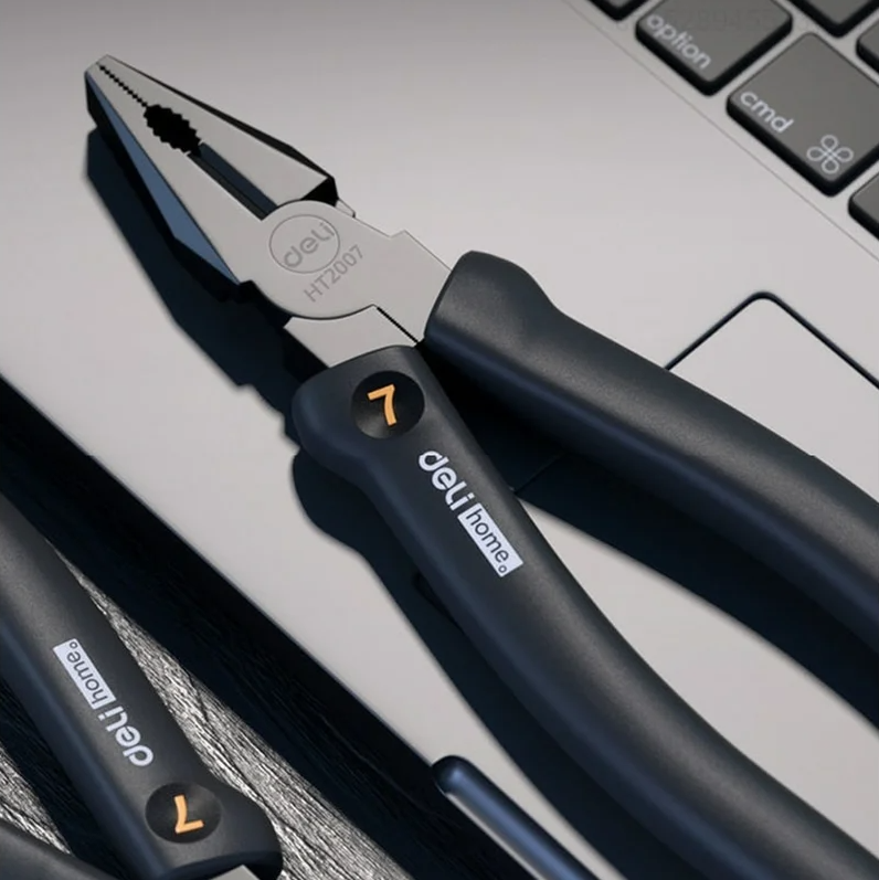 - Плоскогубцы Deli HS EHT2007 180 мм, Soft Touch, черный