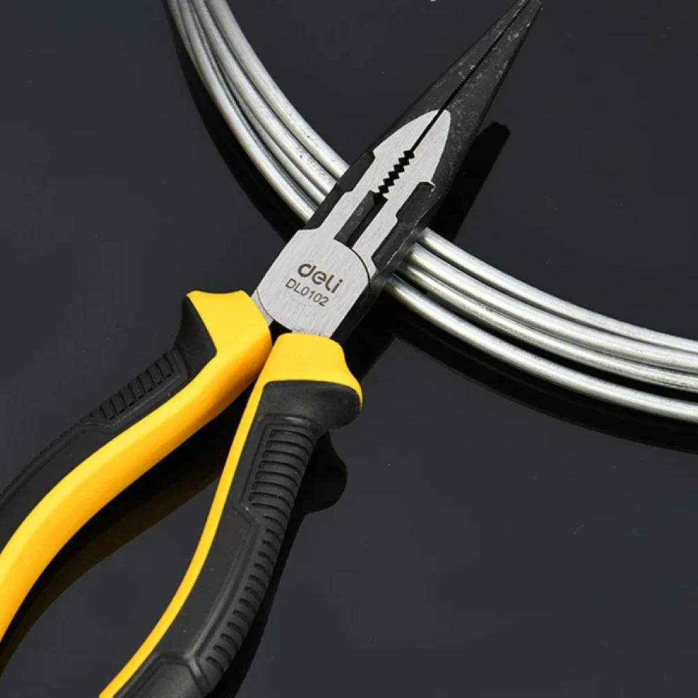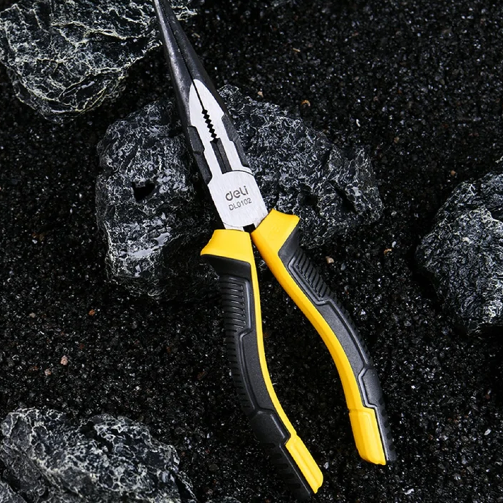 Удлиненные плоскогубцы Deli DL0102 – надежный инструмент для профессионального и бытового использования, созданный для выполнения широкого спектра задач.