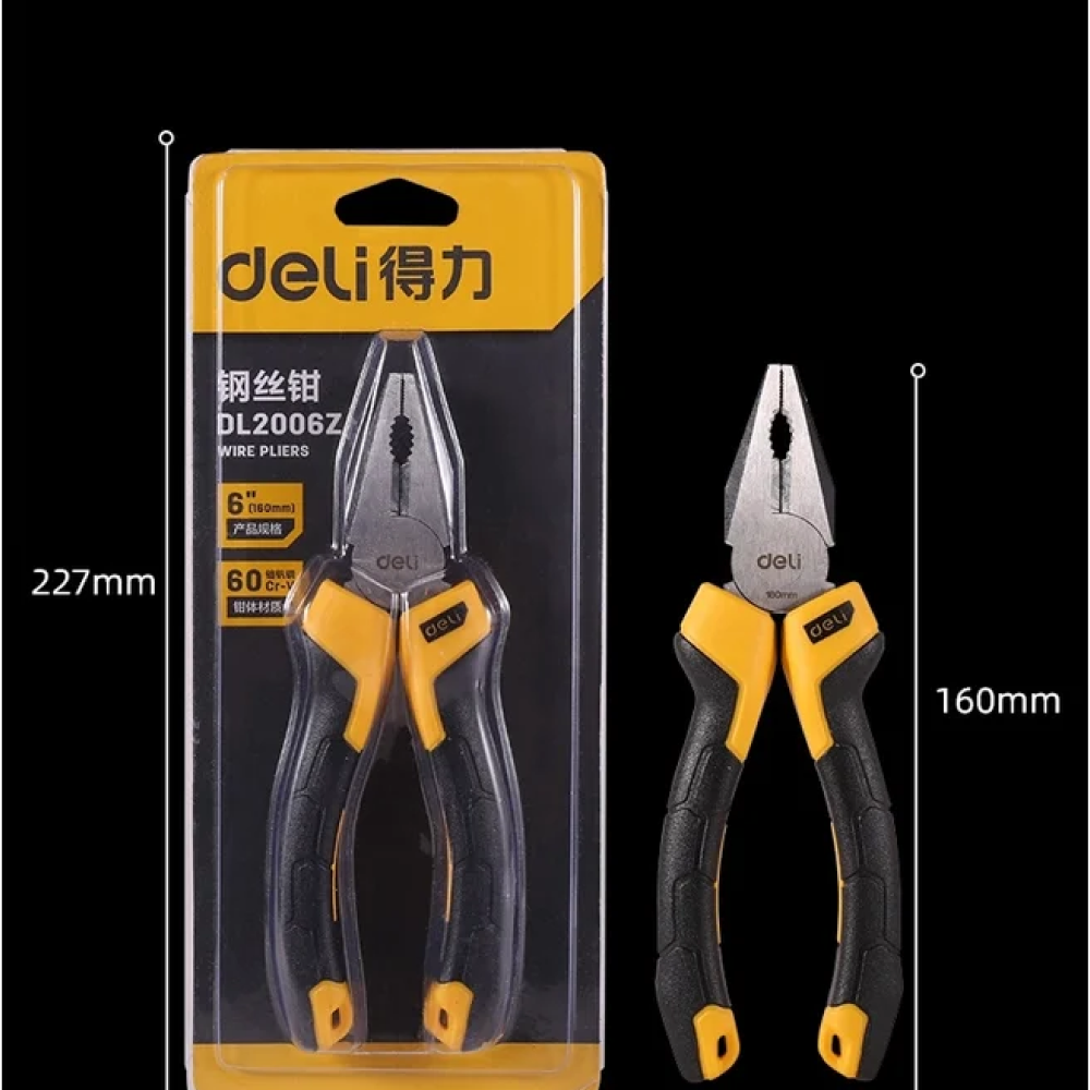 - Плоскогубцы Deli YS EDL2006Z, 160 мм, 2-х компонентные рукоятки