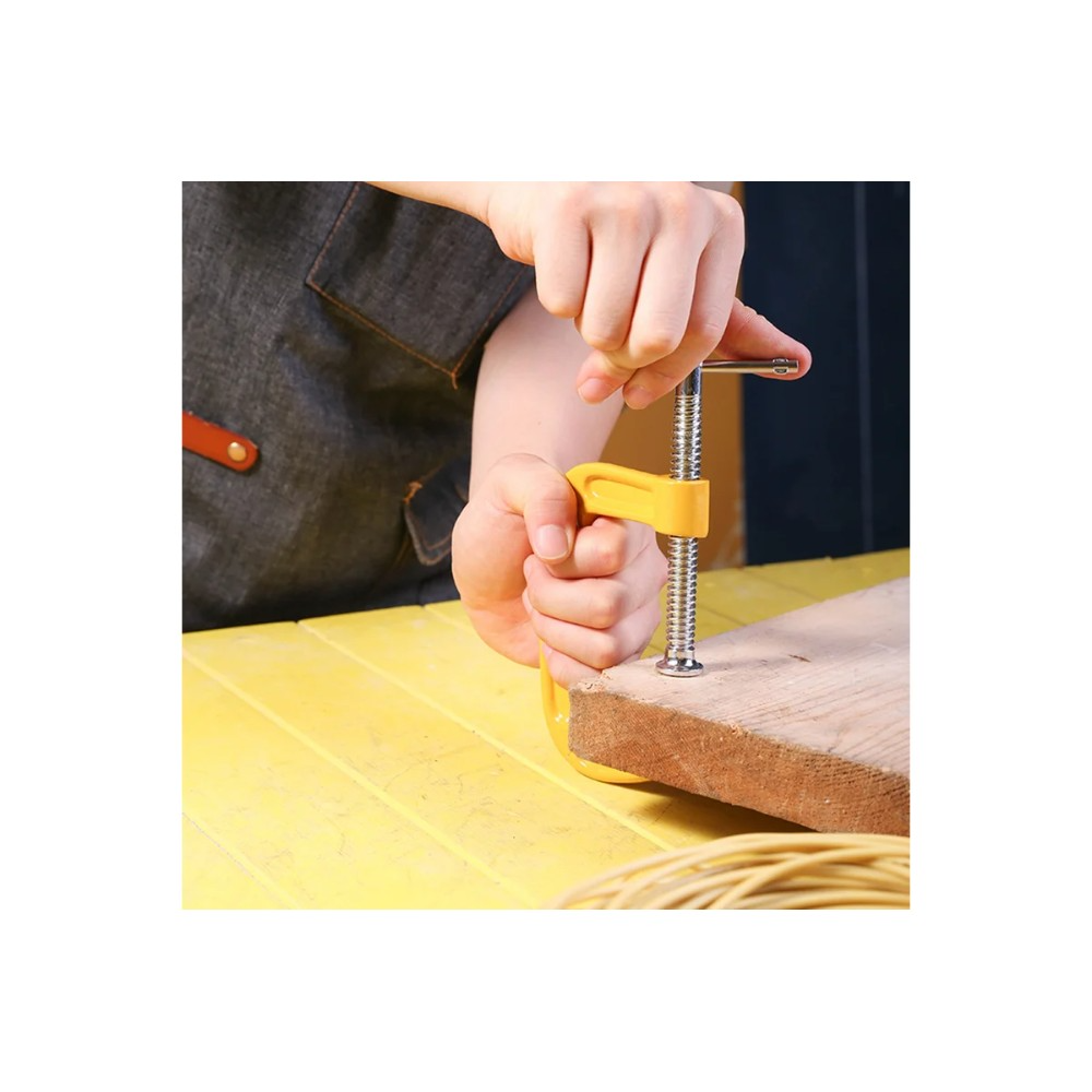 Струбцина G-образная усиленная Deli DL-G203 - ваш надежный помощник для фиксации деталей при выполнении столярных, слесарных и монтажных работ!