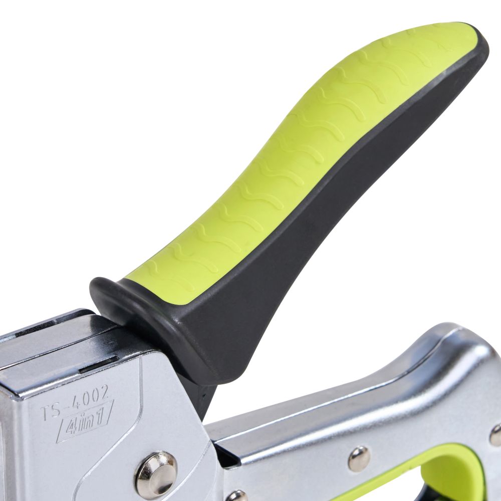 Компактный степлер 4-в-1. Этот прочный и универсальный инструмент предназначен для работы с различными типами скоб.