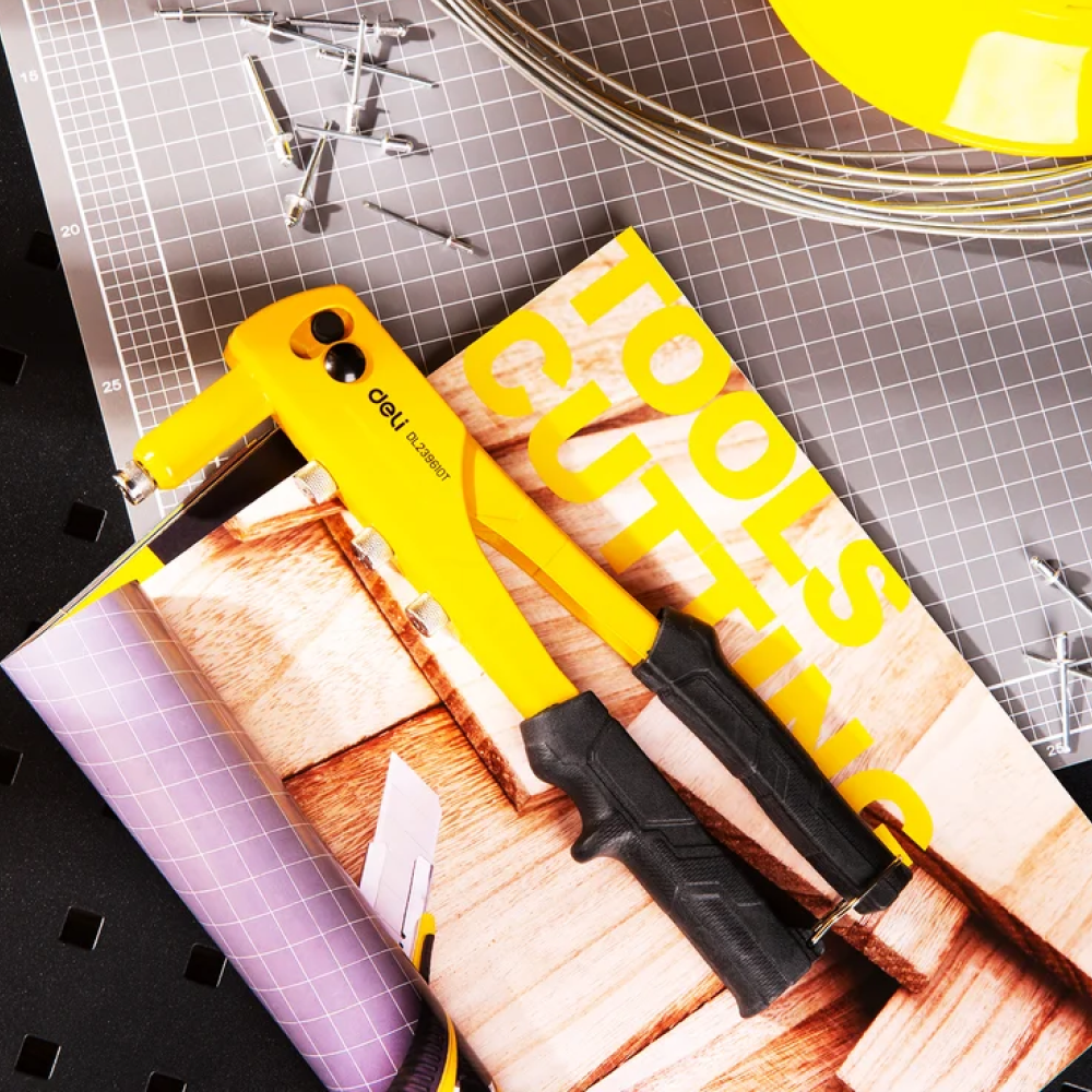 Заклепочник одноручный Deli YS EDL236910T, 270 см, 2.4-4.8 мм, заклепки в комплекте