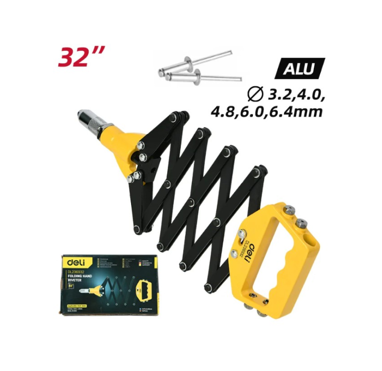 Заклепочник рычажно-складной Deli EDL236932 - это надежный и удобный инструмент, который станет незаменимым помощником при выполнении различных работ.