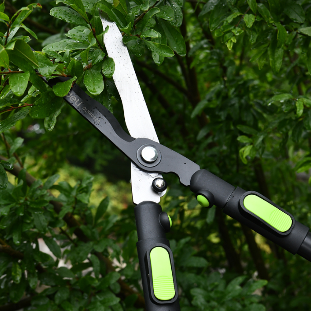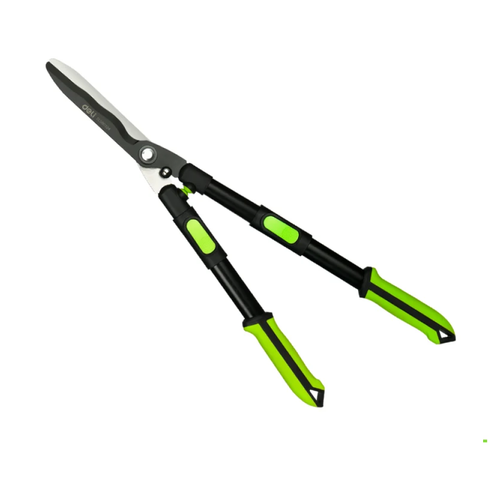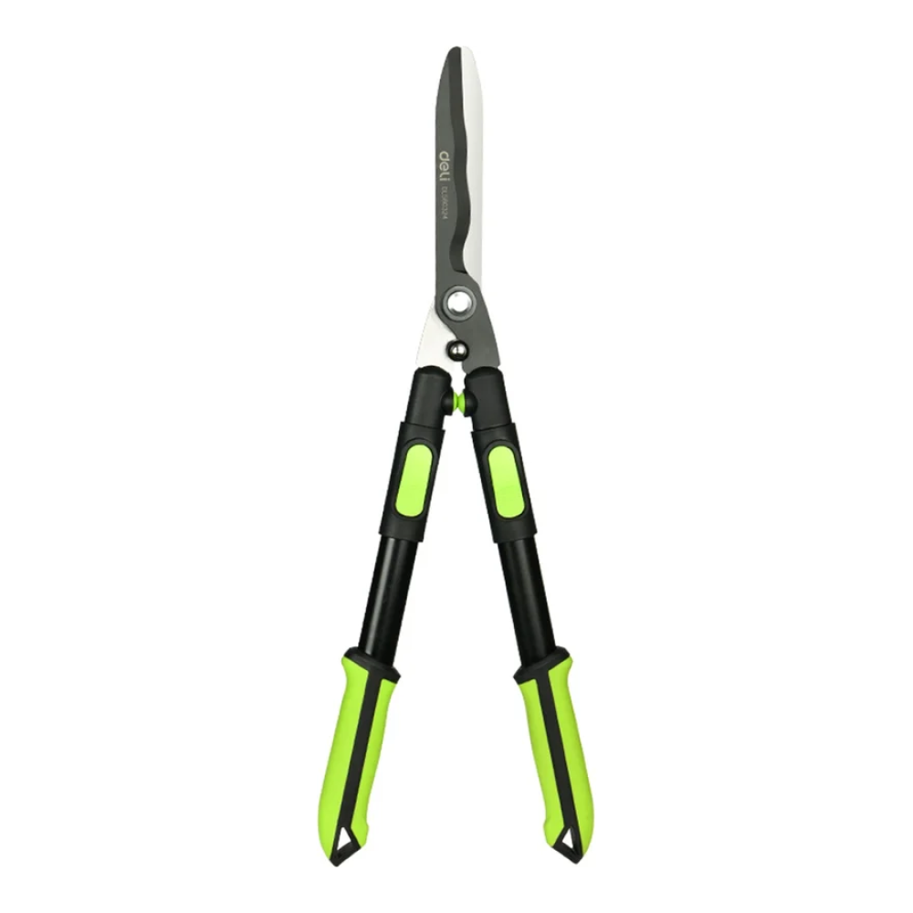 Телескопические рукоятки ножниц DeliDL580324 имеют четыре ступени регулировки длины, что делает их универсальными для пользователей различного роста и удобными для работы в труднодоступных местах.: