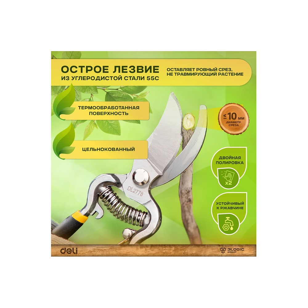 - Секатор Deli GS EDL2778, пружина, диаметр реза 10 мм, ручка ПВХ