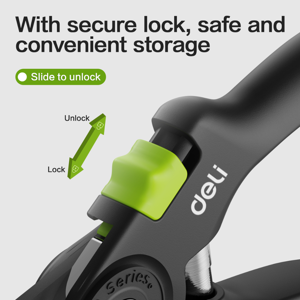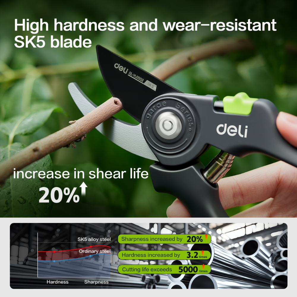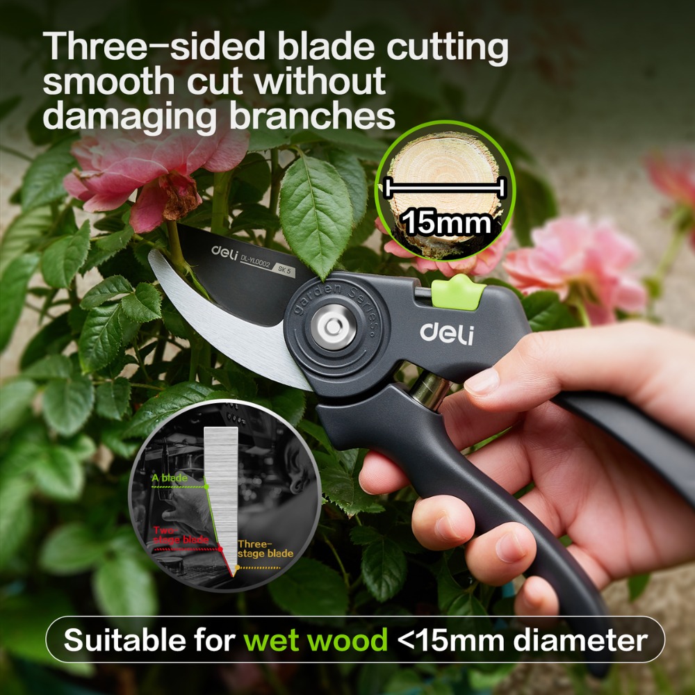 Секатор садовый Deli GS EDL-YL0003 представляет собой надежный инструмент для ухода за садом.
