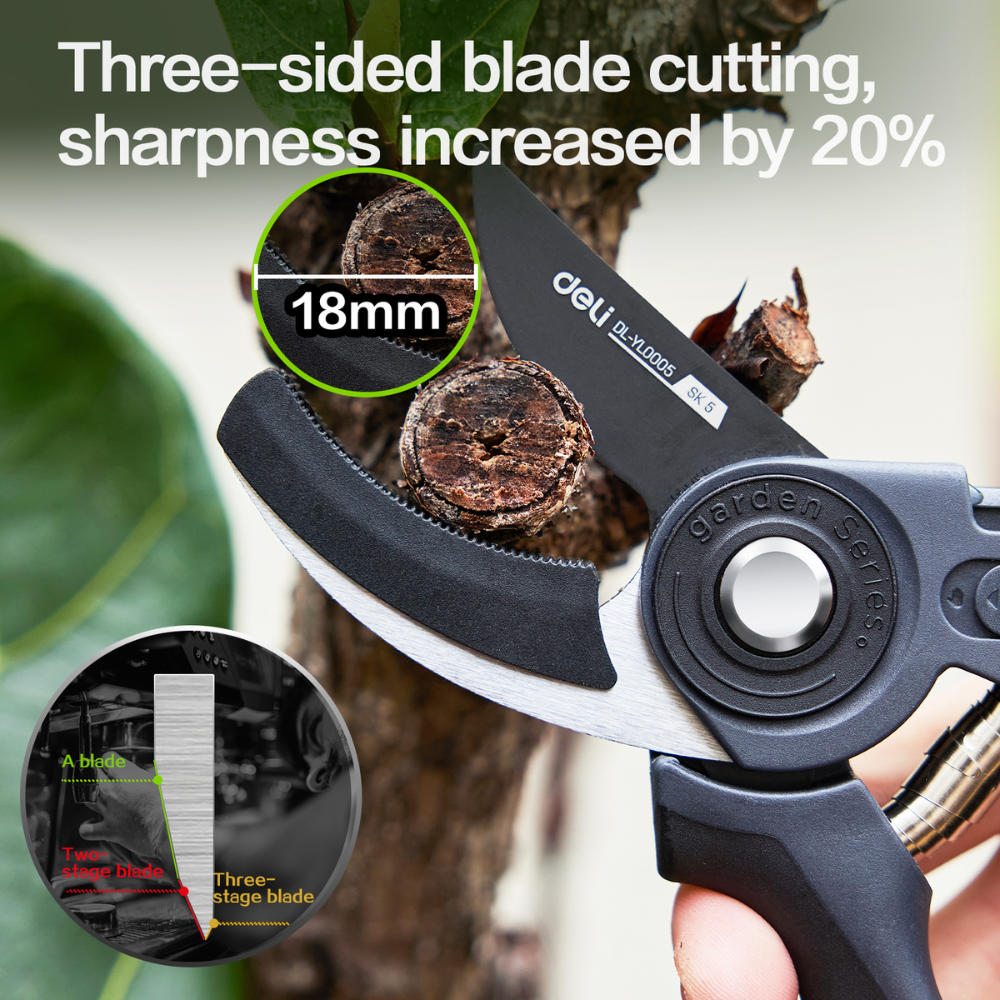 Трехстороннее лезвие обеспечивает плавную резку без повреждения веток.