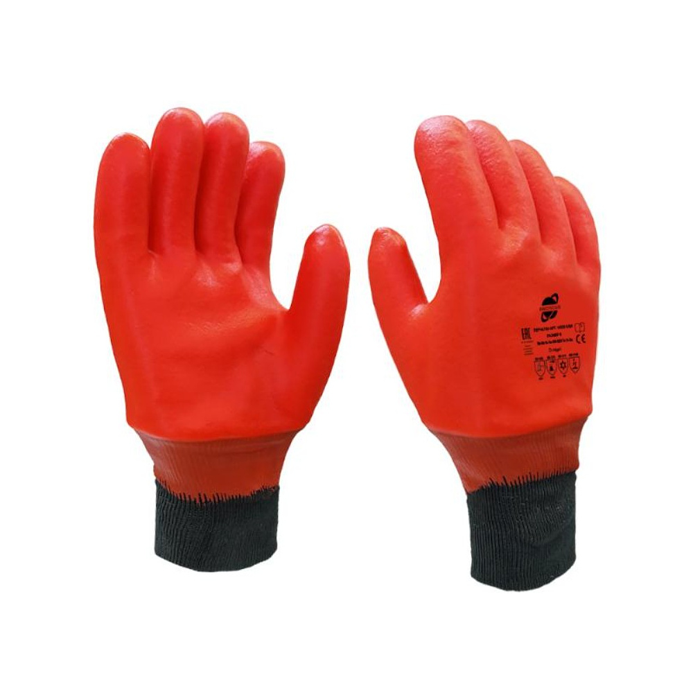 Arcticus 16020 SSW - перчатки нефтеморозостойкие (до -50°C), полностью покрытые морозостойким ПВХ сигнального оранжевого цвета, с зимней подкладкой и трикотажным манжетом черного или белого цвета (в зависимости от партии).