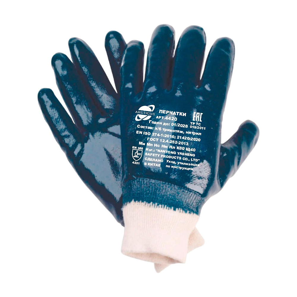 Arcticus 4420 – перчатки трикотажные "Стандарт" с полным нитриловым покрытием синего цвета.