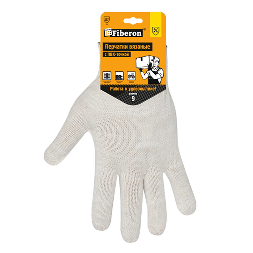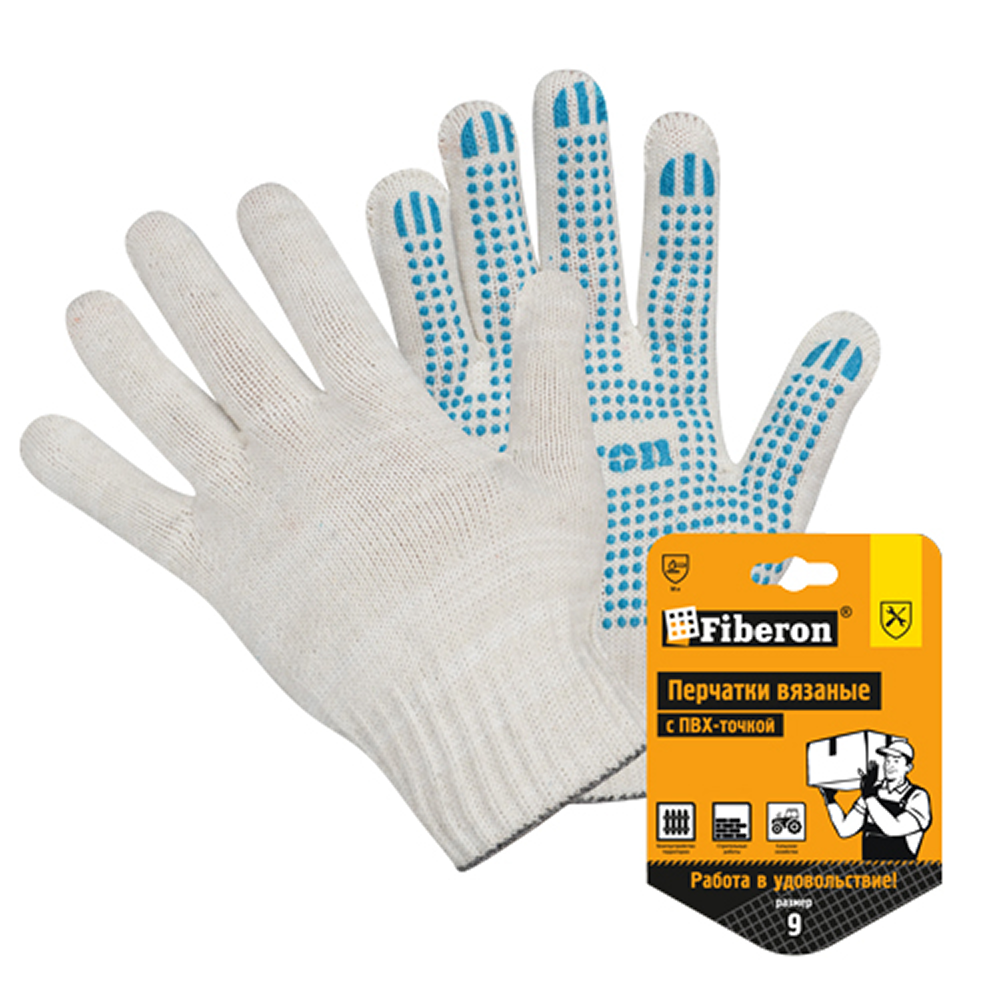 - Перчатки трикотажные х/б с ПВХ покрытием Точка, 10 кл. вязки, белый, в и/у