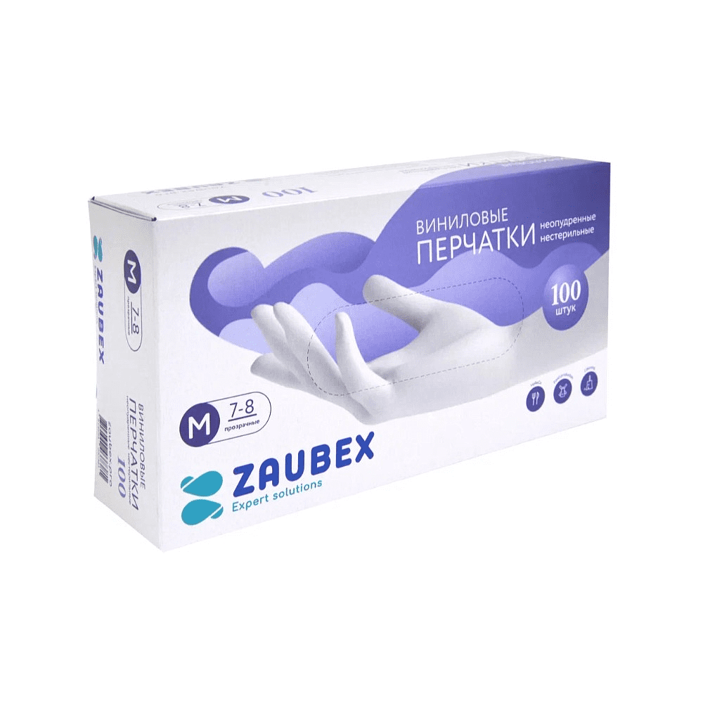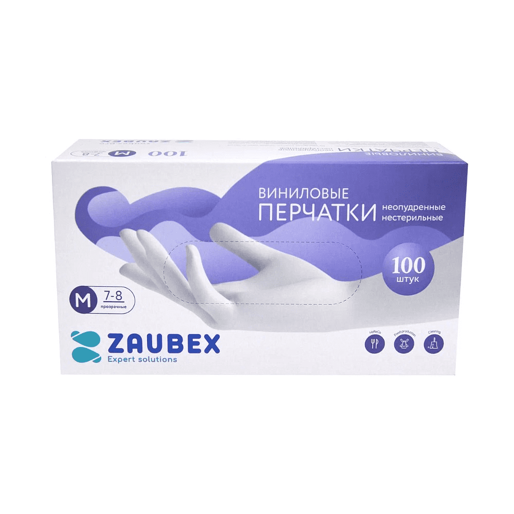 - Перчатки виниловые одноразовые "Zaubex", размер M, 100 шт./упак., -30%